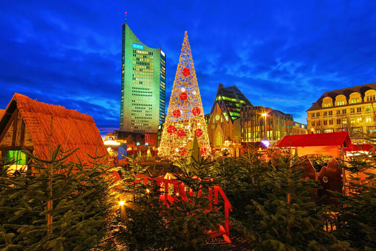Wir zeigen Ihnen bei einer 1,5-stündigen weihnachtlichen Rundfahrt kurz nach Sonnenuntergang die festlich geschmückte Stadt Leipzig und laden Sie anschließend auf einen Glühwein auf dem Weihnachtsmarkt ein.
